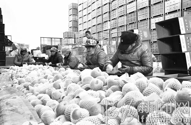 临汾新闻网讯 近日,吉县果商陈刚立把自己去年秋天贮藏在苹果冷藏库中的1.5万公斤苹果装车,发往广州市市场。该县生产的苹果果型端庄、口感甜脆、颜色艳丽而深受消费者欢迎,在北京、广州等二十多个大中城市走俏并出口美国。 陈健翔 张彦芳摄