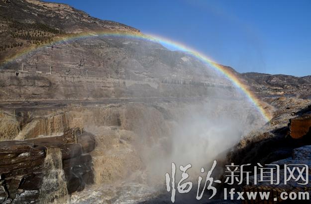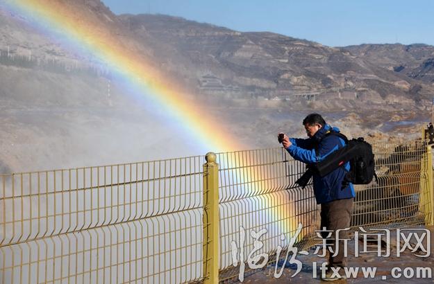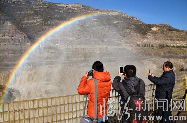 临汾新闻网讯 3月2日,众多游客在吉县黄河壶口瀑布欣赏“彩桥通天”美景。当日,受天气回暖和上游融冰开河速度加快影响,吉县黄河壶口瀑布水量大增,春潮涌动,浪花飞溅,水雾腾空,形成“彩桥通天”壮美景观,吸引了众多游客。