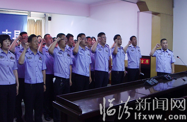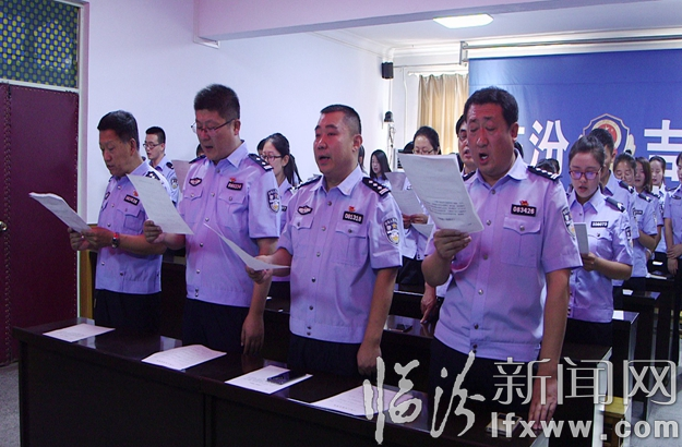 临汾新闻网讯 7月4日上午,我局组织全体民警重温入警誓词。县局党委班子成员和全体工作人员参加了宣誓活动。