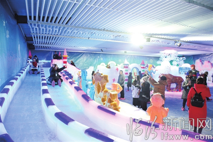 临汾新闻网讯 2019年12月31日,游客在人祖山景区冰雕馆里玩耍。
