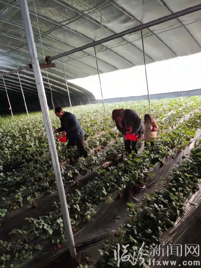 临汾新闻网讯 1月12日以来,吉县吉昌镇霖雨村的正利草莓釆摘园的草莓已进入采摘高峰期,每天都有来自周边县市的客人采摘游玩。采摘园内的草莓饱满红艳,深受游客喜爱。图为游人正在园内采摘。