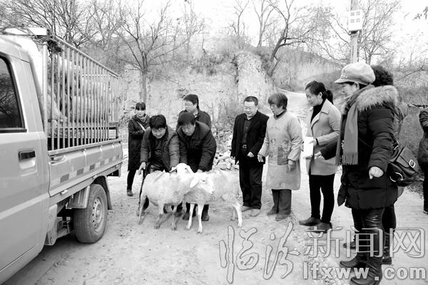 临汾新闻网讯 11月28日,翼城县新闻中心扶贫队把两只大绵羊送到王庄乡石潭村贫困户李秀英手中。连日来,县、乡扶贫队和村“两委”班子通过充分听取民意、多方征求意见,购买绵羊16只,成年母猪2头,分别发放到石潭村7户贫困户。据悉,翼城县在财政吃紧的情况下,拨出专项扶贫资金近700万元,做到精准扶贫产业扶贫。