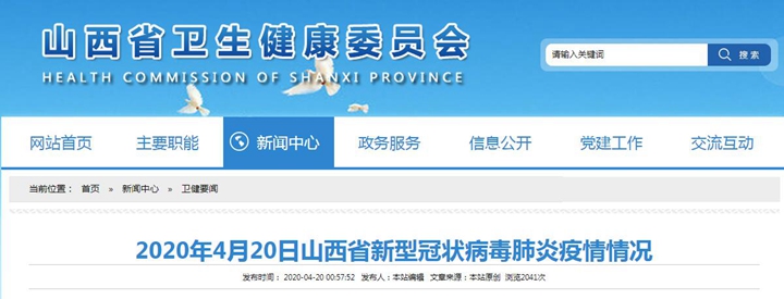 2020年4月19日0-24时,山西省本地无新增新冠肺炎确诊病例、疑似病例和无症状感染者。累计报告确诊病例133例,治愈出院133例。