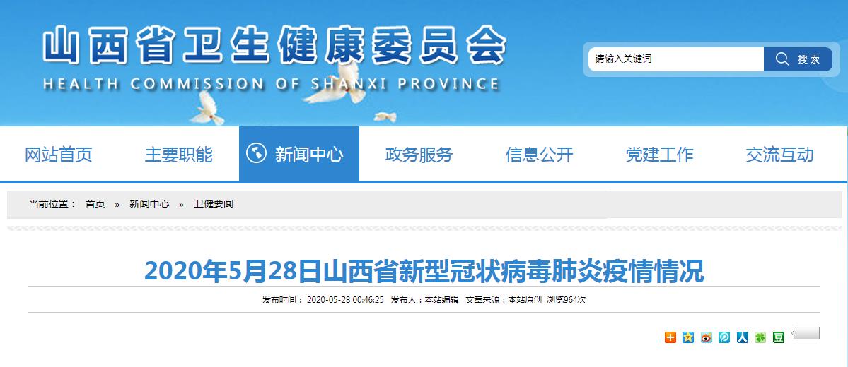 2020年5月27日0-24时,山西省无新增境外输入确诊病例。累计报告境外输入性确诊病例64例,治愈出院64例。现有疑似病例0例。