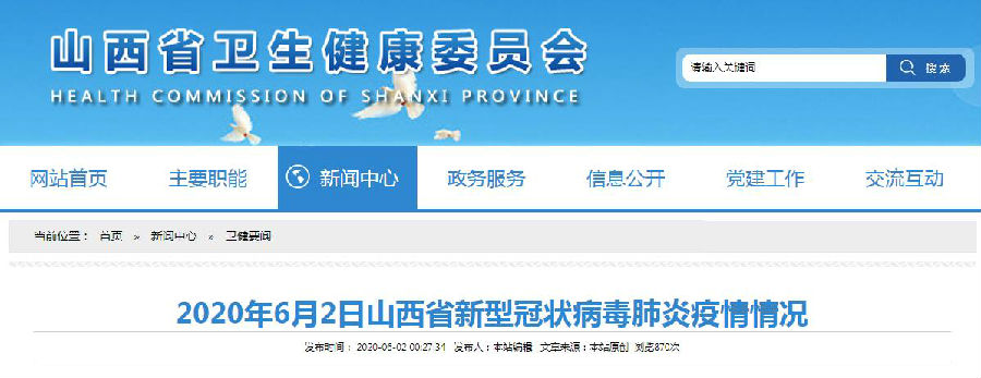 2020年6月1日0-24时,山西省无新增无症状感染者。现有无症状感染者0例。