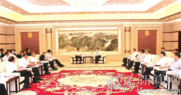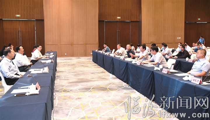 ▲ 浙江省丽水市委副书记、市长吴晓东及市四套班子有关领导与我市党政代表团座谈。 记者 赵俊堂 摄