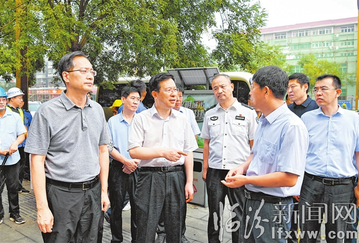董一兵一行先后来到市府巷口、财神楼南北街、向阳西路、鼓楼南北街等地,实地察看提质改造工程进展、整治效果,听取拆迁安置、规划设计、完工时限等情况介绍,研究解决遇到的困难和问题。董一兵对市区靓城提质“三大行动”取得的成效给予肯定,对沿街单位、商户和广大群众的理解、支持表示感谢。