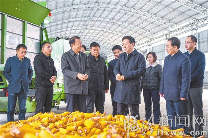 图为董一兵在蒲县黑龙关镇中垛村调研茂洲农牧科技有限公司运营情况。记者 闫锐鹏 摄