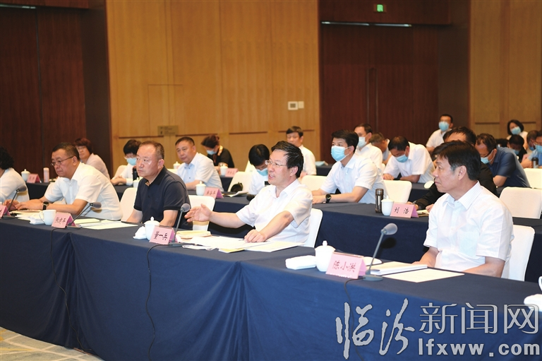 5月29日,市委书记董一兵带领我市党政代表团在陕西省西安市学习考察。陕西省委常委、西安市委书记王浩与代表团一行座谈交流,共商加强关中平原城市之间合作发展大计。图为董一兵在座谈会上发言。记者 赵俊堂 摄