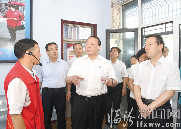 7月15日下午,省委常委、统战部长徐广国深入侯马市、曲沃县,就民族团结进步创建工作、民营企业经营发展情况进行调研。市委书记董一兵、市委常委郝忠祥分别参加调研活动。图为徐广国在侯马市路西街道办事处东街社区调研。 记者 魏华 摄