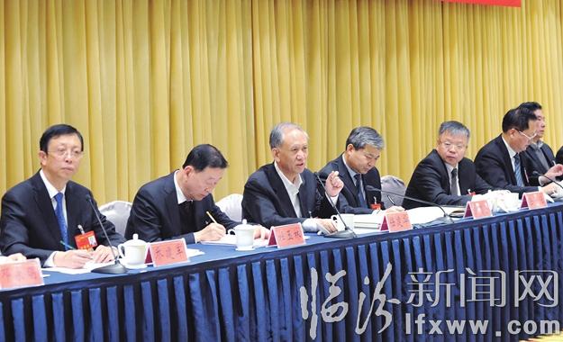 1月15日,省十二届人大七次会议临汾市代表团举行全团会议和分组会议,审议政府工作报告、计划和预算报告及大会其他文件。图为任建华、罗清宇等省领导在临汾代表团参加讨论。记者 魏华 摄