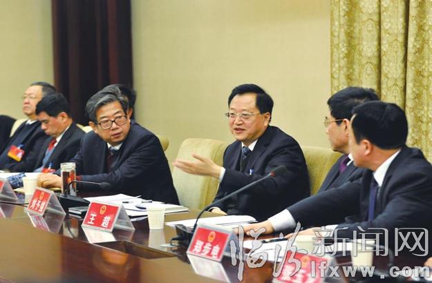 2月21日上午,市委副书记、市长刘予强在洪洞县代表团与代表们一同审议《政府工作报告》和《市人大常委会工作报告》。图为刘予强在洪洞代表团参加审议。记者 闫锐鹏 摄