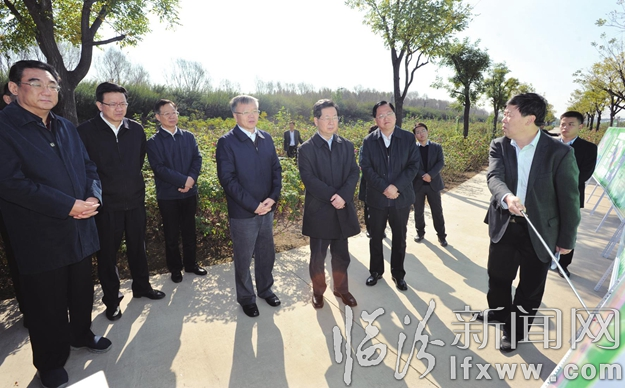 10月30日,省委副书记、省长楼阳生深入到我市检查指导水环境治理、清洁取暖等工作。他强调,要认真学习、深刻领会、全面贯彻落实习近平新时代中国特色社会主义思想和党的十九大精神,深入贯彻落实习总书记视察山西重要讲话精神,牢固树立“绿水青山就是金山银山”的发展理念,永远把人民群众对美好生活的向往作为奋斗目标,坚决打好水环境治理、清洁取暖等污染防治攻坚战,让人民群众有更多获得感。图为楼阳生在汾河临汾断面监测点检查指导工作。记者 赵俊堂 摄