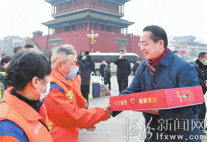 在市区鼓楼广场,李云峰一行看望慰问了坚守一线的环卫工人。李云峰向大家致以新春问候,祝大家新春快乐、身体健康、万事如意。他说,过去的一年,环卫工人们早出晚归、披星戴月,冒严寒、顶酷暑,辛勤工作,为打造“不一样的临汾”、越来越美的临汾作出了突出贡献。相关部门要把更多的人力、物力、财力向基层一线倾斜,为环卫工人创造更好的工作、生活条件。