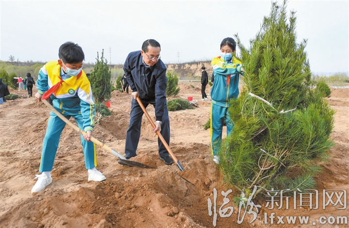 春日融融,新绿初绽,正是植树造林的好时节。上午9时许,李云峰等市领导集体乘车,来到尧都区涝洰河生态公园润州园植树点,与现场干部群众、少先队员一起参加义务植树活动。大家挥锹铲土、培土围堰、平整踩实、提水浇灌,认真细致完成每一道工序,接连种下白皮松、木槿、银杏等苗木,现场一派繁忙景象。和煦的春风中,一株株挺拔的树苗迎风挺立,焕发出绿色的希望。劳动间隙,李云峰与一同植树的少先队员张舒喻、李知燃亲切交谈,询问学习生活和劳动锻炼情况,希望他们从小培养生态环保意识、节约节俭意识,好好学习,热爱劳动,德智体美劳全面发展,努力成长为党和人民需要的有用之才。各中小学校要结合身边人、身边事,组织开展好“保护环境、热爱家乡”等主题班队会活动,增强少先队员的活动参与感和社会责任感,把有意义的事情做得有意思、把有意思的事情做得有意义,通过“小手拉大手”,带动更多人投身国土增绿、改善生活环境、共建美丽临汾、共享绿水青山。