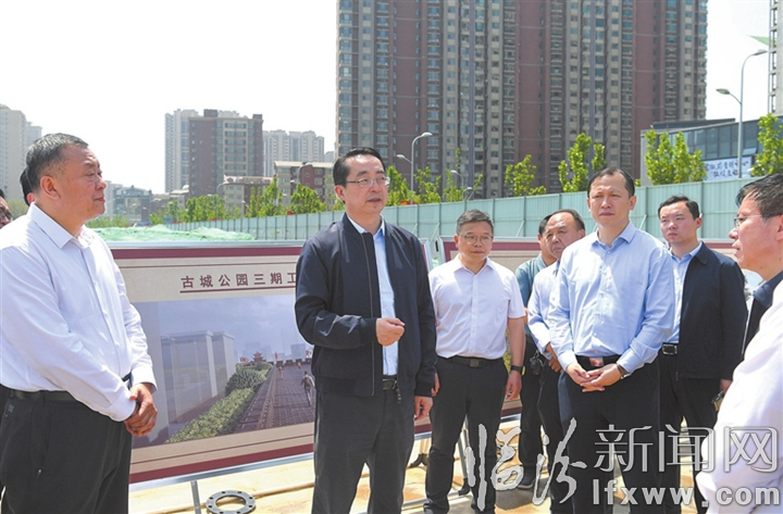 李云峰强调,征地拆迁是保障工程顺利实施的前提。要紧盯时间节点,合力攻坚克难,下决心解决征地拆迁的难点、堵点问题,深入细致地做好群众思想工作,保障群众合理合法诉求,依法依规、加快推进征地拆迁工作进度,确保城建重点项目顺利实施。要优化施工组织,强化施工力量,严格按照时间表、路线图,倒排工期、挂图作战,抢时间、抓进度、提质量、保安全,全力以赴加快推进工程建设;同时,要同步推进项目周边绿化、公共设施建设,因地制宜建设小型球场、健身设施等,优化植种搭配,合理设置乔木间距,提升绿化标准,做到应绿尽绿。要加强现场管理,从严落实环保“六个百分百”,压实主体责任、监管责任,强化通报、问责、考核,确保安全文明施工。要强化宣传引导,把市区城建重点项目建设速度和成效真实客观展示出来,把城市更新工作的宏伟目标、美丽愿景释放出去,让广大群众更加了解、理解和支持重点项目建设,在全社会形成“爱临汾·赢未来”的浓厚氛围。