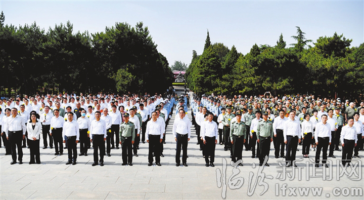图为李云峰、王延峰等领导在临汾烈士陵园参加纪念活动。记者 魏华 摄