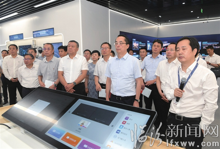 图为市党政代表团在新华三杭州创新体验中心听取有关情况介绍。记者 苏亚兵 摄