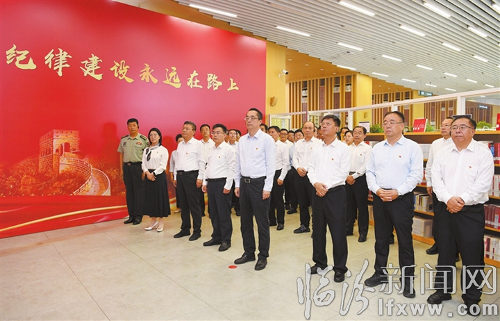 图为李云峰、王延峰等市领导参观党纪学习教育专题展。记者 魏 华 摄
