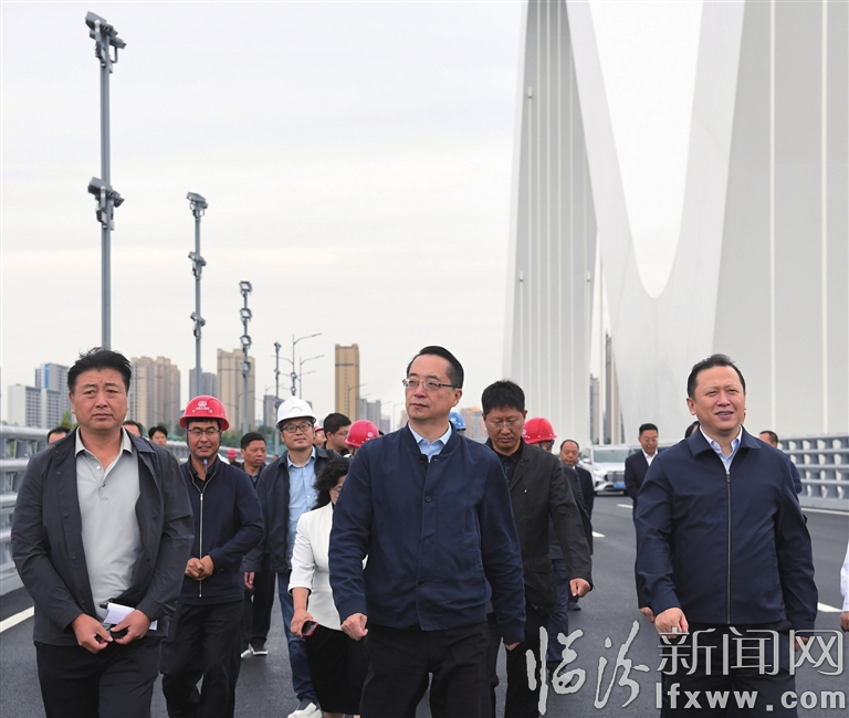 图为李云峰在姑射桥现场调研北环节点建设情况。记者 魏华 摄
