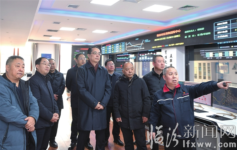 李云峰在市区供热指挥中心检查供热系统运行保障情况。记者 闫锐鹏 摄