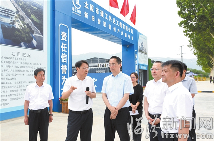 李云峰在侯马市调研新田智联信创产业园项目建设进展及施工安全管理情况。记者 闫锐鹏 摄