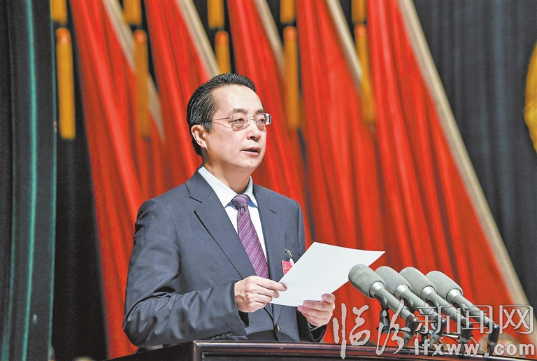 2月23日,在临汾市第四届人民代表大会第八次会议上,市长李云峰作政府工作报告。 记者 赵俊堂 摄