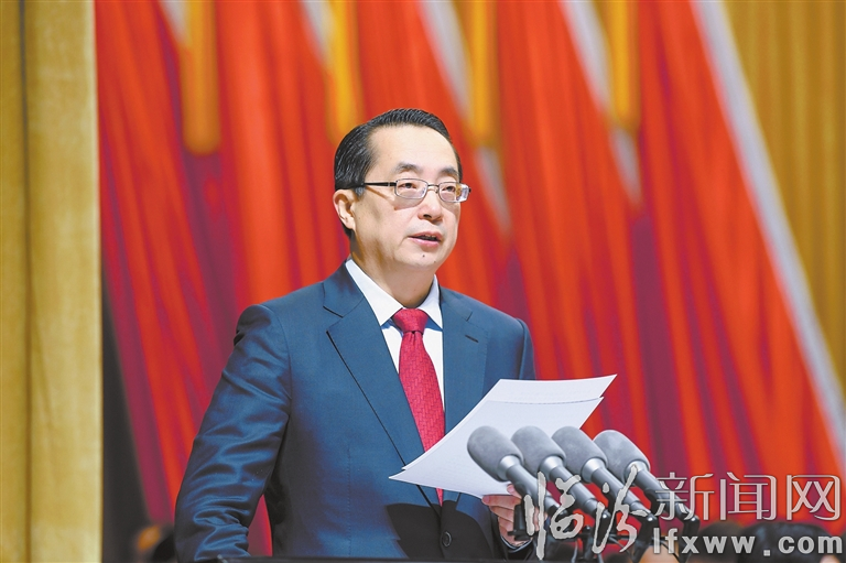 2月20日,在临汾市第五届人民代表大会第一次会议上,市长李云峰作政府工作报告。 本报记者 赵俊堂 摄
