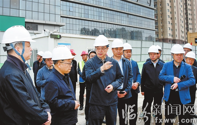 4月10日下午,市委书记李云峰深入市区快速中环、市委党校迁建、文化主轴主脉等重点建设项目工地调研。他强调,要聚焦城市发展所需、人民群众所盼,坚持城市“双品质”建设最大逻辑不动摇,加快重点项目实施步伐,不断增强城市承载力、人才吸引力和产业集聚力,为临汾实现“三个努力成为”创造良好条件。图为李云峰在河汾一路快速路工程东段调研项目建设有关情况。 记者 闫锐鹏 摄
