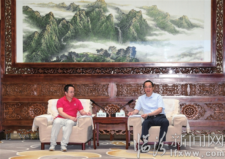 图为李云峰与周鸿祎进行工作会谈。 记者 闫锐鹏 摄