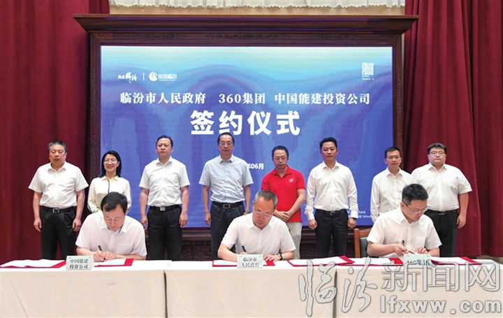 6月4日,市委书记李云峰与360集团创始人、董事长周鸿祎,中国能源建设集团投资有限公司党委委员、副总经理赵帅举行工作会谈,共同出席市政府与360集团、中能建投战略合作框架协议签约仪式。市领导王渊、张潞萍、张希亮,360集团高级副总裁、360数智化集团CEO殷宇辉,360集团董事长业务助理、360集团副总裁、360数智化集团总裁杜昆出席。副市长胡晓刚,360数智化集团副总裁梁博,中国能源建设集团投资有限公司总法律顾问、投资事业部总经理肖云峰代表三方签约。图为签约仪式现场。 记者 闫锐鹏 摄