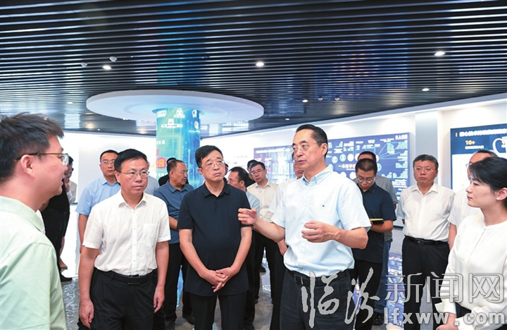 8月15日,市委书记李云峰赴尧都高新区、“晋创谷·临汾”、临汾经济开发区,宣讲省委十二届十次全会精神,调研发展新质生产力、培育壮大新兴产业工作,并主持召开座谈会,与企业家面对面交流,倾听意见建议,研究解决问题。他强调,要深入学习贯彻习近平总书记考察山西重要讲话重要指示精神,认真落实省委十二届十次全会精神,坚定信心、真抓实干,以科技创新引领新质生产力发展,大力推进现代化产业体系建设,努力在推动资源型经济转型发展上迈出新步伐。山西电子科技学院党委书记扈新起,市委常委、常务副市长胡晓刚,市委宣传部部长、一级巡视员闫建国,副市长王云参加。图为李云峰在阿里云(临汾)双碳数字经济产业园了解数字经济服务平台建设情况。记者 闫锐鹏 摄