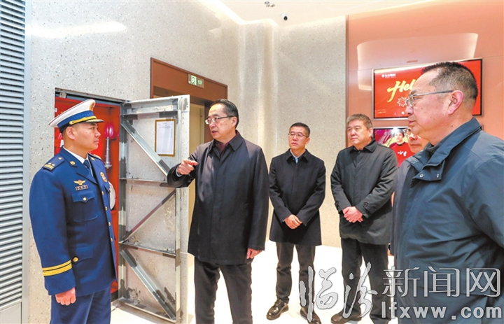 2月12日上午,市委书记李云峰来到市区生龙国际时尚广场,调研节前市场供应、食品安全和消防安全等工作。他强调,要深入学习贯彻习近平总书记关于安全生产的重要论述,坚持以人民为中心的发展思想,以“时时放心不下”的责任感,全力以赴做好保安全、稳供应、促消费、惠民生等工作,让人民群众度过一个喜庆祥和、有浓浓“年味”的新春佳节。图为李云峰在市区生龙国际时尚广场检查消防安全情况。记者 闫锐鹏 摄