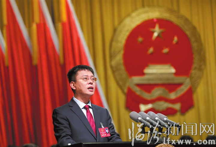 市长王延峰在市五届人大五次会议上作政府工作报告。记者 闫锐鹏 摄