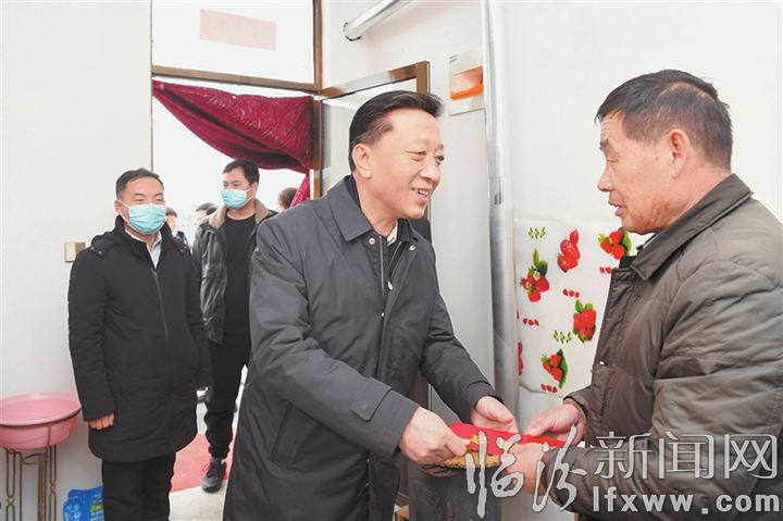 新春佳节即将来临之际,1月27日,市委书记闫晨曦深入尧都区,走访慰问受灾群众、生活困难党员、老党员、困难企业和困难职工,向他们送上诚挚问候和新春祝福。市委常委、秘书长郭行杰,市委办公室、市委组织部、市总工会、市民政局、尧都区负责人参加慰问。图为闫晨曦在尧都区大阳镇三和村走访慰问受灾群众。记者 魏华 摄
