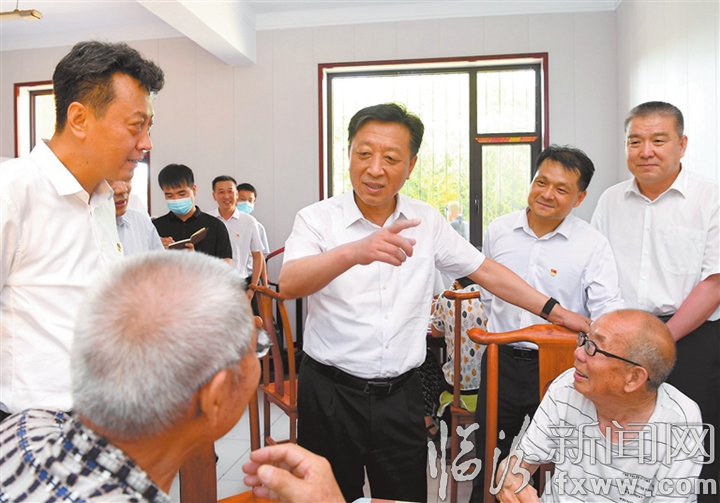 7月6日,市委书记闫晨曦深入尧都区、襄汾县、侯马市,调研汾河流域防洪能力提升工程建设等工作。他强调,要深入学习贯彻习近平总书记考察调研山西重要指示精神和关于防汛救灾工作的重要指示精神,全面落实省委、市委部署要求,全力推进汾河流域防洪能力提升工程建设,补齐防洪基础设施短板,切实提升防洪减灾能力,确保汾河安澜和人民群众生命财产安全。副市长张潞萍,市委办公室、市委政研室、市应急管理局、市乡村振兴局、市水利局、市规划和自然资源局、市农业农村局负责人参加。图为闫晨曦在侯马市凤城乡北王村日间照料中心调研。 记者 魏 华 摄