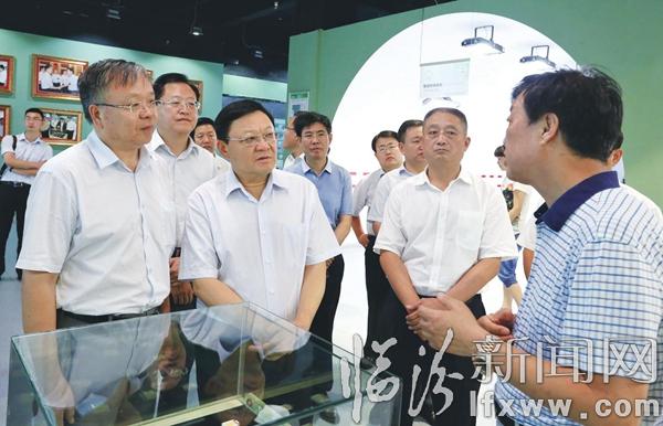 图为王伟中在尧都区光宇半导体照明有限公司检查指导工作。 记者 郑远飞