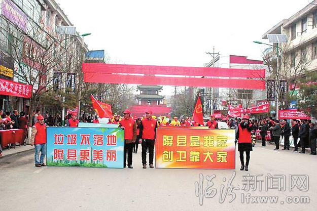 隰县志愿者走向街头宣传环境卫生整治工作。