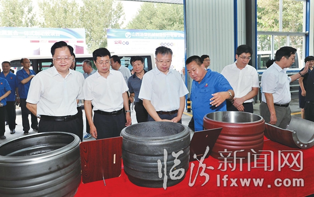 图为市领导在侯马市汤荣装备制造园观摩。记者 赵俊堂 摄