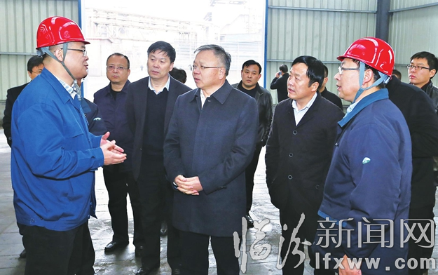 图为岳普煜在山西三维集团调研烟气脱硫、脱硝及料场封闭情况。记者 苏亚兵 摄