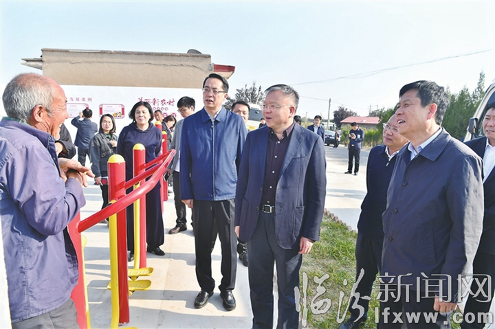 图为岳普煜在浮山县米家垣乡牌子窑村调研易地扶贫搬迁情况。记者 苏亚兵 摄
