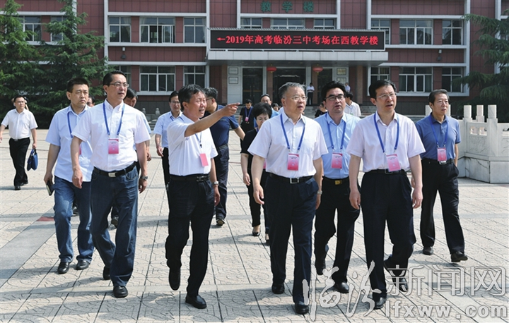 图为岳普煜等领导在临汾三中巡视高考工作。记者 赵俊堂 摄