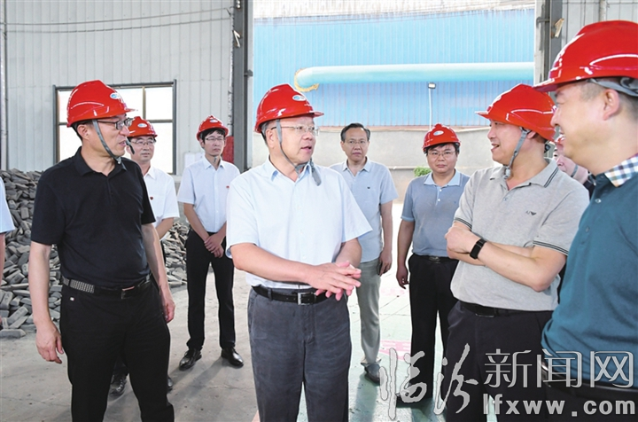 图为岳普煜在襄汾县欣嵘物贸有限责任公司调研。记者 魏华 摄