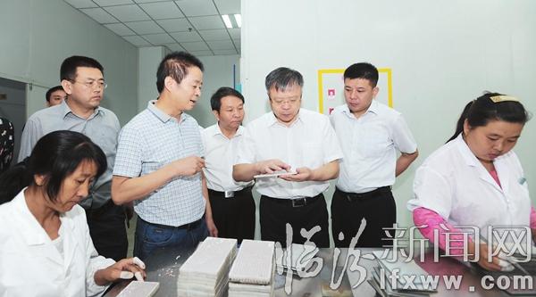 8月30日,市委书记岳普煜到大宁、隰县调研。他强调,要提高特色产业发展的集约化、产业化、现代化水平,加大品牌建设力度,增强市场竞争力,促进农民增收致富。 图为岳普煜在大宁县轻工业园区调研园区企业生产运营情况。记者 魏华 摄