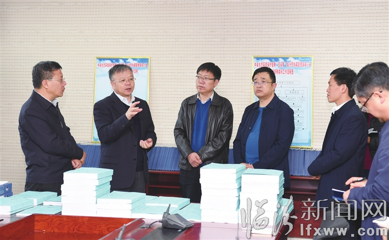 11月9日,省人大常委会副主任、市委书记岳普煜到临汾热电公司、龙祠水源地督查环境问题整改工作。他强调,要深入学习贯彻习近平生态文明思想和习近平总书记视察山西重要讲话精神,提高政治站位,压实工作责任,明确时间节点,加快整改进度,全力抓好各项整改任务落实,推动我市环境质量持续稳步向好。图为岳普煜在市环保局了解中央生态环境保护督察“回头看”临汾市协调联络领导小组工作情况。记者 闫锐鹏 摄