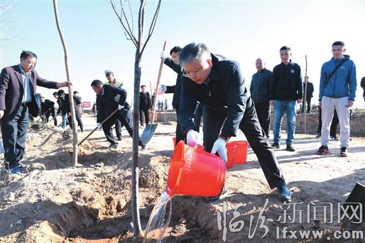 春回大地万物苏,植树添绿正当时。在第41个植树节来临之际,3月12日上午,省人大常委会副主任、市委书记岳普煜,市领导李云峰、陈小洪、张建平、周计伟、陈纲、常青、王金珍、王国平、冯建宁、张学伟、潘海燕、杨忠华、刘小才、程明温、梁清燕等与广大干部群众一起来到尧都区乔李镇北高村义务植树,为建设美丽临汾添新绿。图为岳普煜等领导在尧都区乔李镇北高村植树。记者 魏华 摄