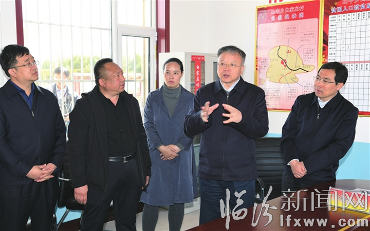 4月16日,省人大常委会副主任、市委书记岳普煜到蒲县调研干部进村服务、乡村产业发展等工作。他强调,要深入贯彻习近平新时代中国特色社会主义思想,因地制宜、发挥优势,找准标杆、争创一流,加快发展壮大乡村产业,拓宽农民增收渠道,为决胜全面建成小康社会、实现乡村振兴奠定坚实基础。图为岳普煜在蒲县山中乡白家庄村调研干部进村服务工作情况。记者 赵俊堂 摄