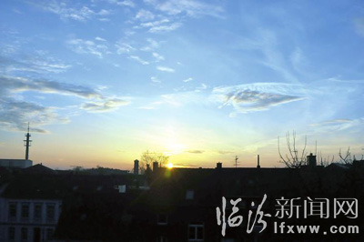 但就在最后的一瞬间,我第一次在天空中,与太阳近距离地对视,霎时金光四射,一阵眩晕,那种感觉,以我的文字功力是无法准确描述出来的,留下的只有辉煌与感叹。多次坐飞机,而只有这一次,我在空中,看到了欧洲的落日。