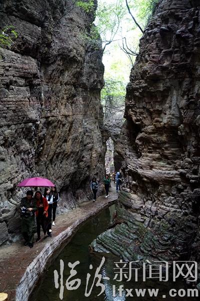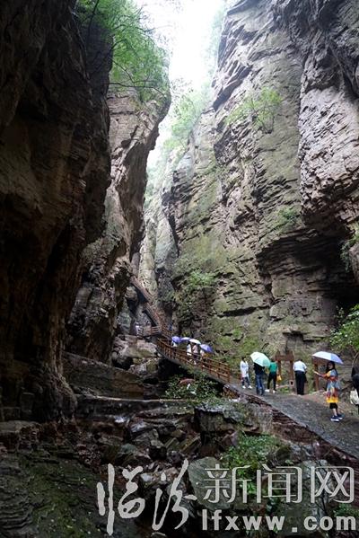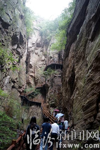 临汾新闻网讯(记者 姚建)位于河南省三门峡市渑池县境内的韶山峡,峡谷长4.5公里,位于海拔1600米的韶山脚下,属国内典型的叠层石英砂岩丹霞地貌峡谷。谷内全程红色石英砂岩,奇石林立,陡壁千仞。谷内古树参天、清凉幽邃,鸟语花香,潭瀑涟涟,空气清新,沁人心脾。目前,在谷内保护性开发30多处景点,最著名景观一线天,“两山吻唇边,一脉紧相连。”