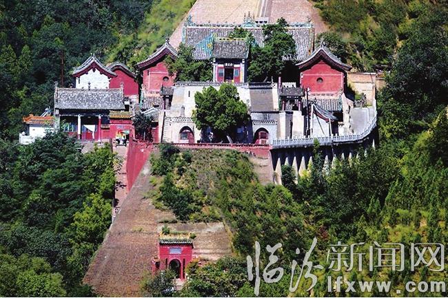 无量殿对面是韦陀殿,韦陀像是一整块楠木所雕,威武逼真,工艺精湛。由韦陀殿背后两侧进“疑无路”上“别有天”便可到孤桐峰。该峰两角分建钟、鼓二楼,峰顶有摩云阁,内祀观音菩萨,外祀奎光文星。登阁远眺,田园如画,令人神往。下院北房珍藏一部明版善本藏经,共7000余卷,保存完好。